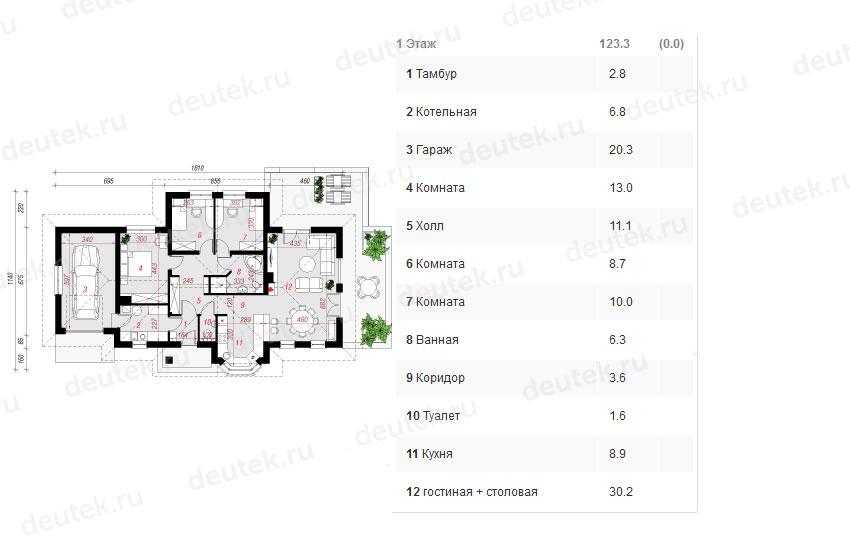 | Материал стен: | пустотелый керамический блок (или газобетон) 25 см |