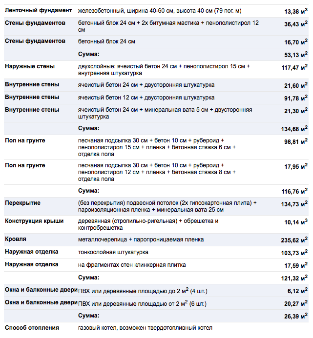 | Фундамент: | ленточный, ширина 400-600 мм, высота 400 мм с бетонными блоками 240 мм |