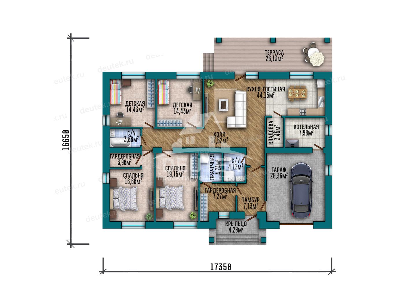 | Габариты дома: | 17.35 x 16.65 м |