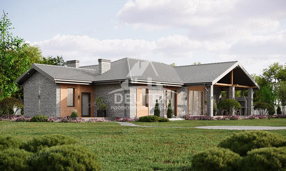 Проект загородного одноэтажного дома с баней и двумя террасами - LK-317