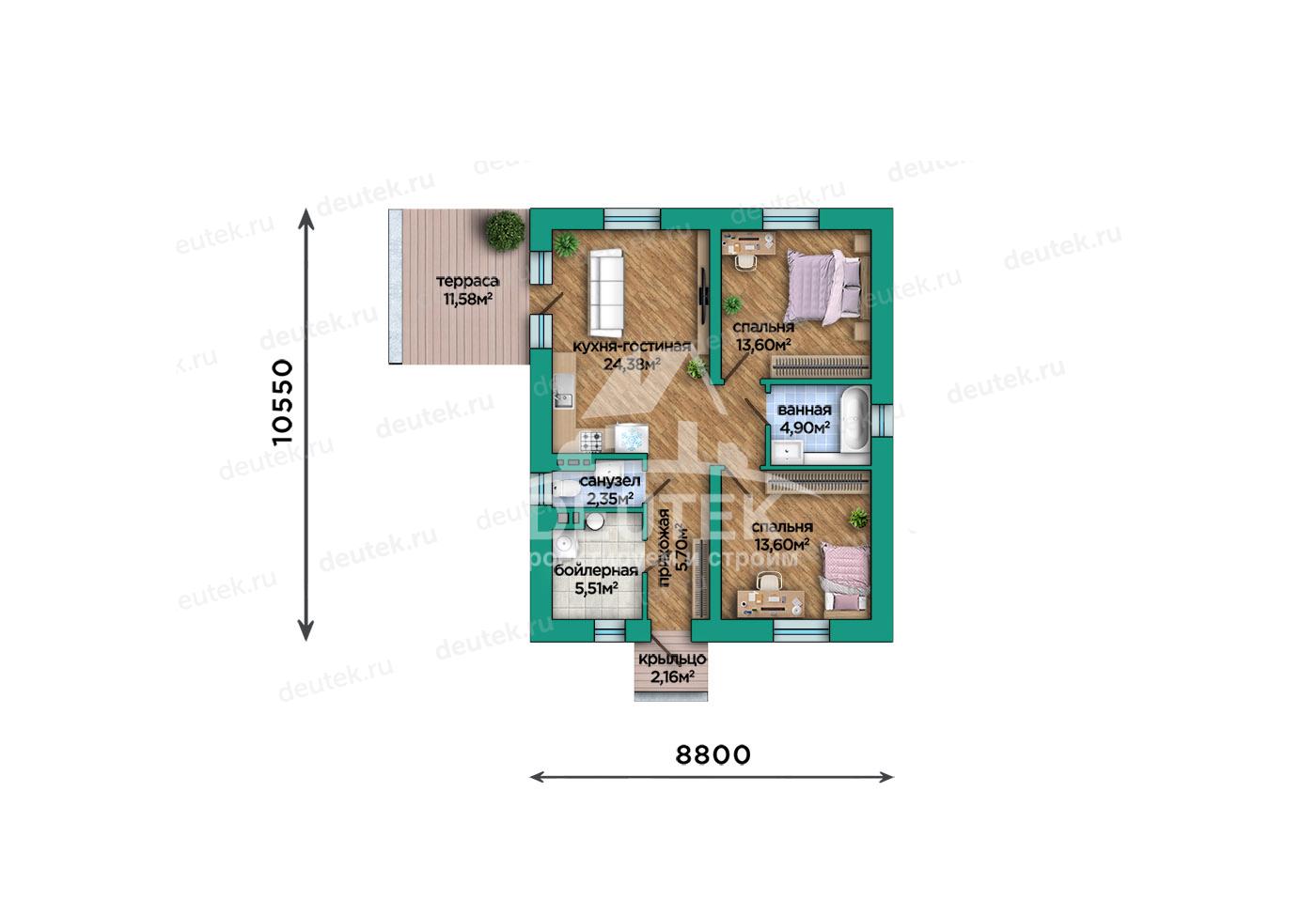 Габариты дома: 8.80 x 10.55 м